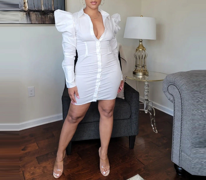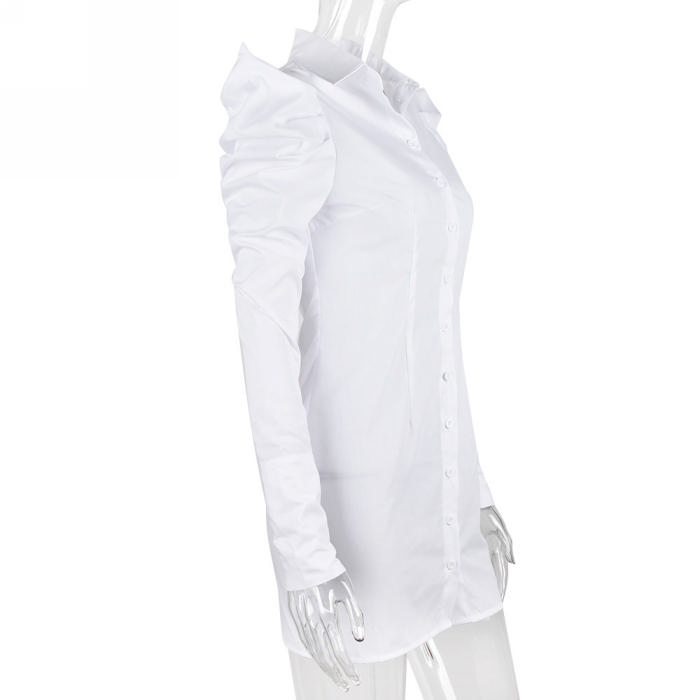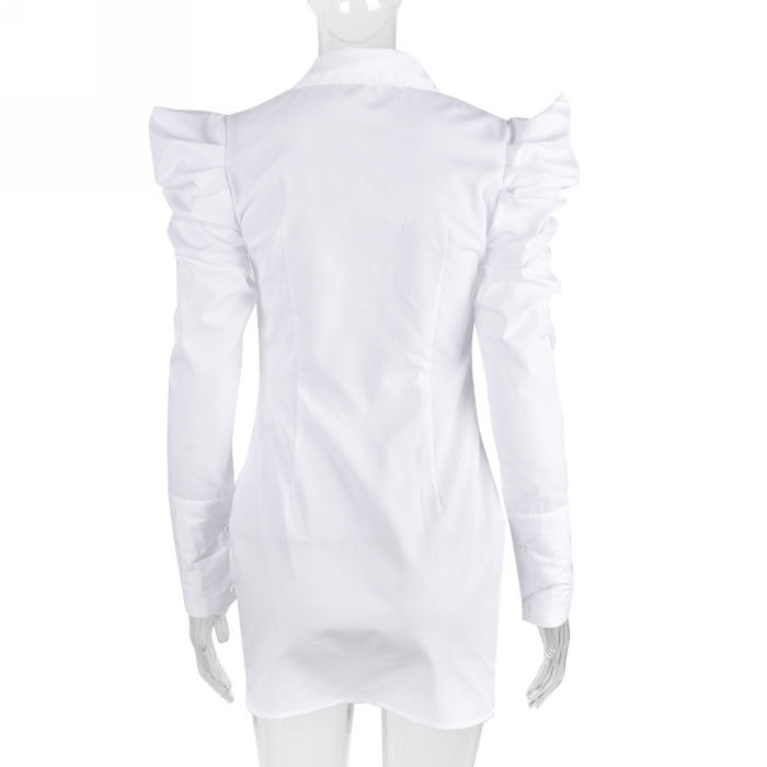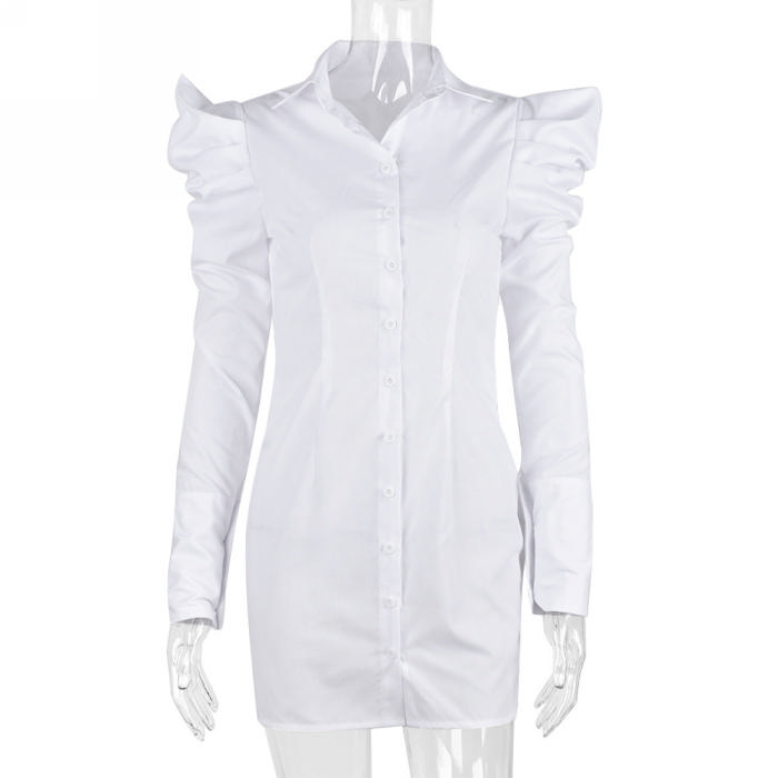 (Real Image)2022 Styles Women Fashion INS Styles White Front Button Shirts Mini DressSKU: #CF59188-1
