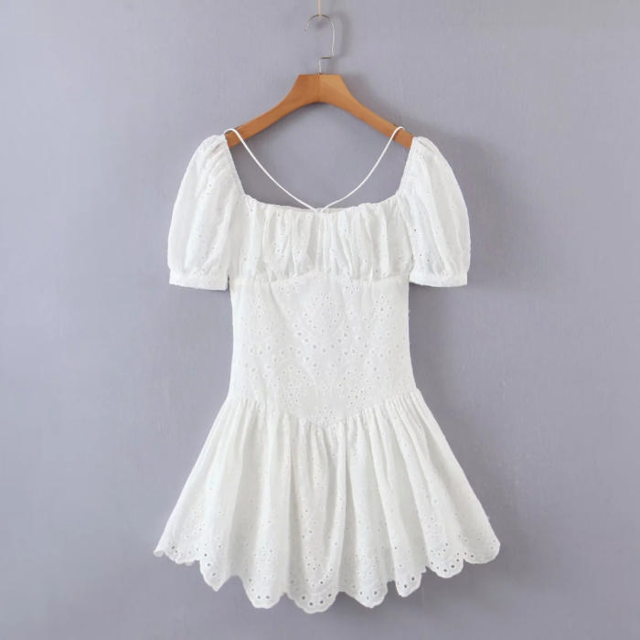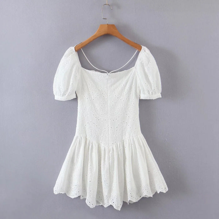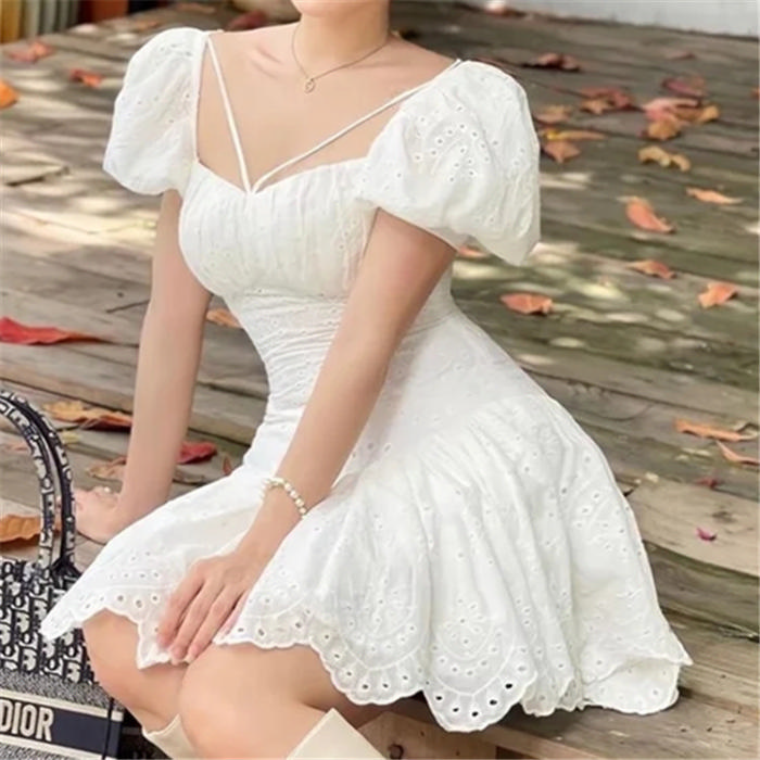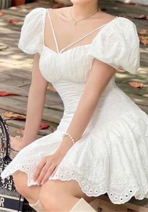(Real Image)2022 Styles Women Fashion INS Styles White Lace Hem Mini DressSKU: #CF08804-1