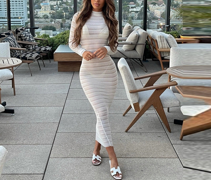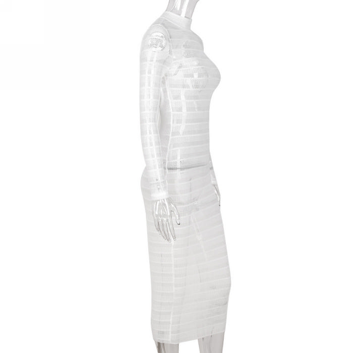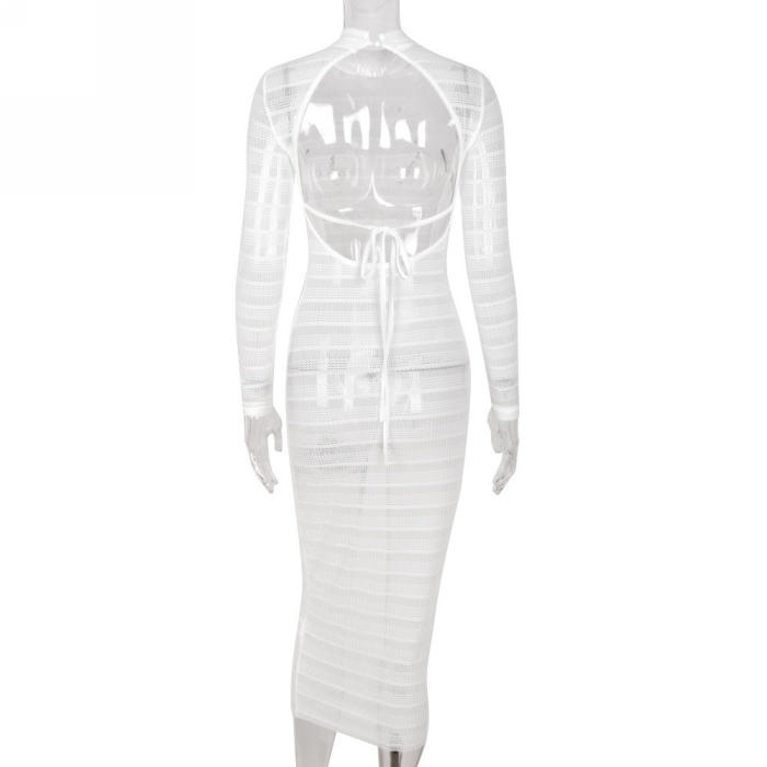 (Real Image)2022 Styles Women Fashion INS Styles White Lace Long Sleeve Maxi DressSKU: #CF59098-1