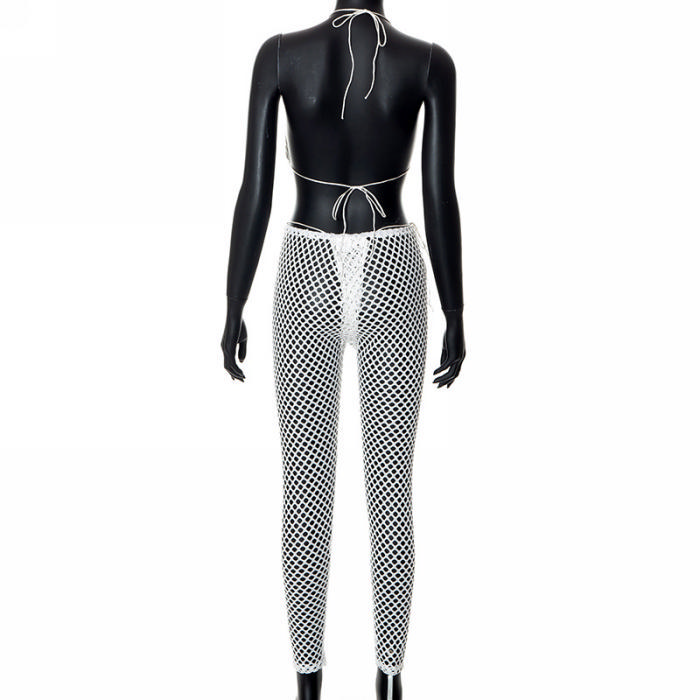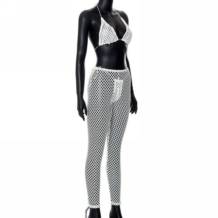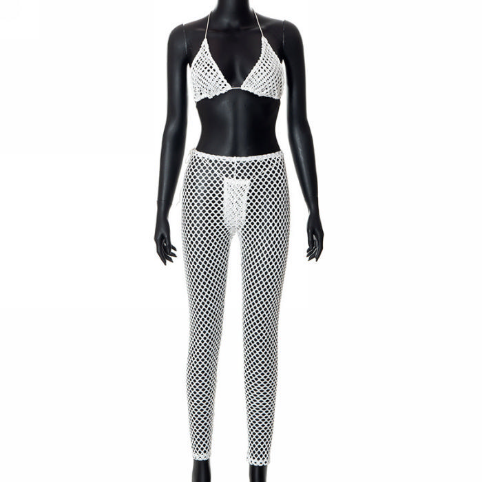 (Real Image)2022 Styles Women Fashion INS Styles White Net Hollow Two Piece SuitSKU: #CF47106-1