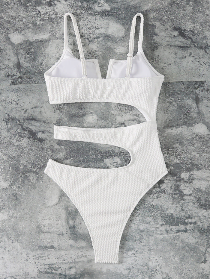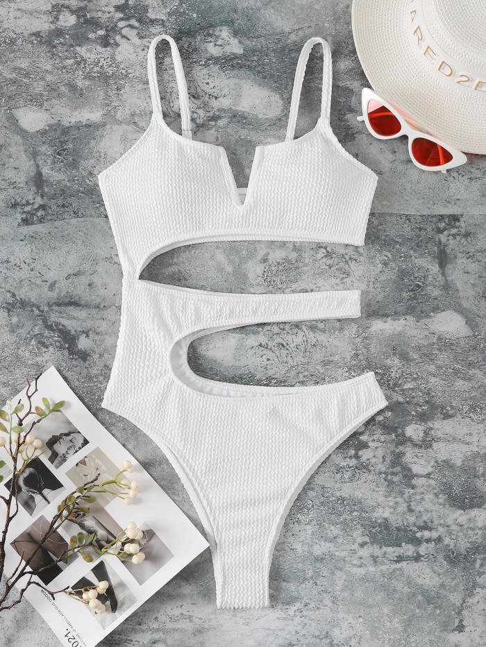 (Real Image)2022 Styles Women Fashion INS Styles White Rib One Piece SwimwearSKU: #CF31174-1