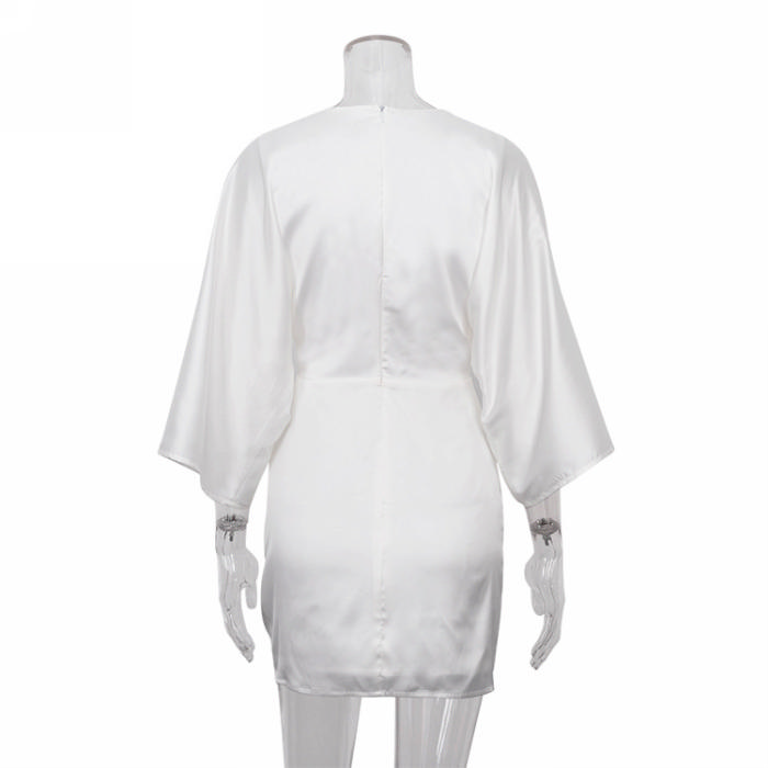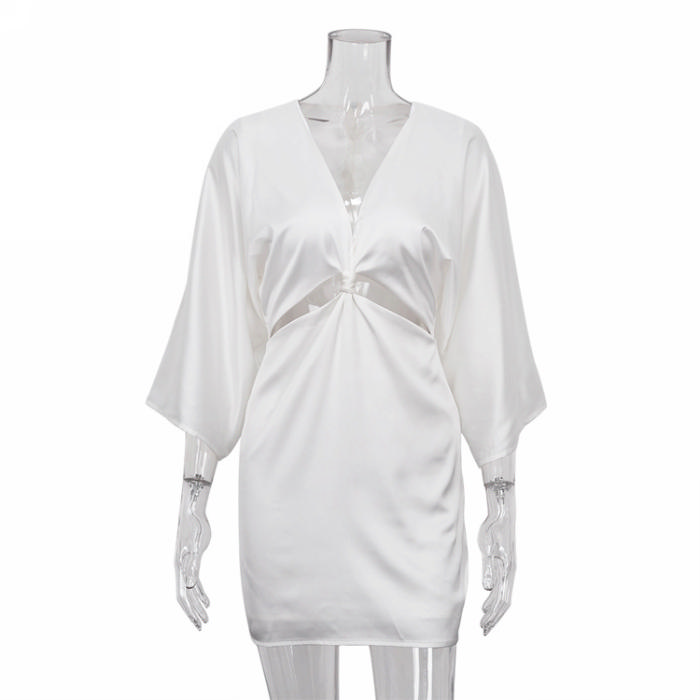 (Real Image)2022 Styles Women Fashion INS Styles White Silk Cut Out Loose Mini DressSKU: #CF72015-1