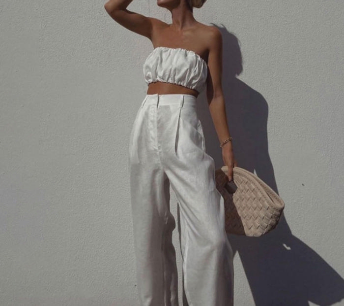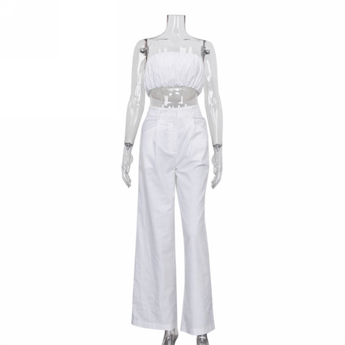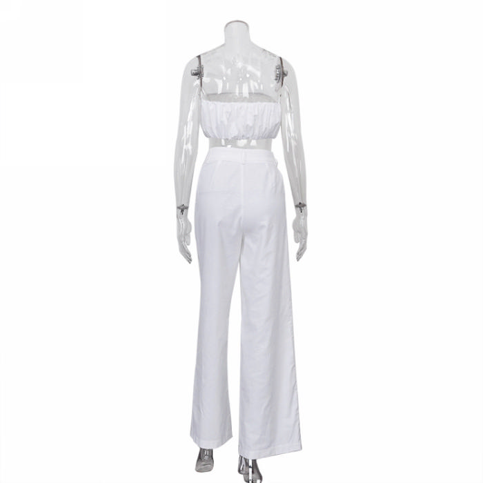 (Real Image)2022 Styles Women Fashion INS Styles White Tube Tops+Long Pants Two Piece SuitSKU: #CF72014-1