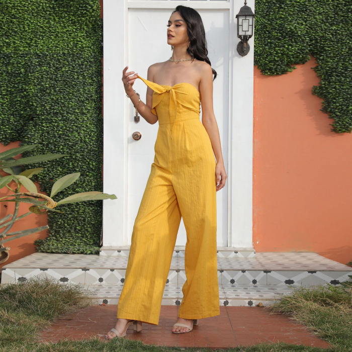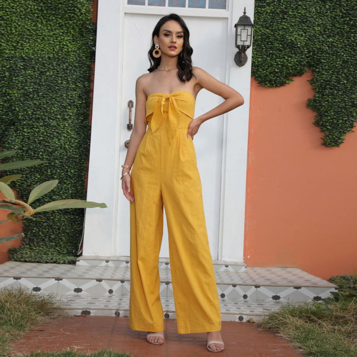 (Real Image)2022 Styles Women Fashion INS Styles Yellow Off Shoulder Bohemian JumpsuitSKU: #CF09045-1