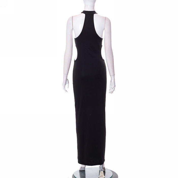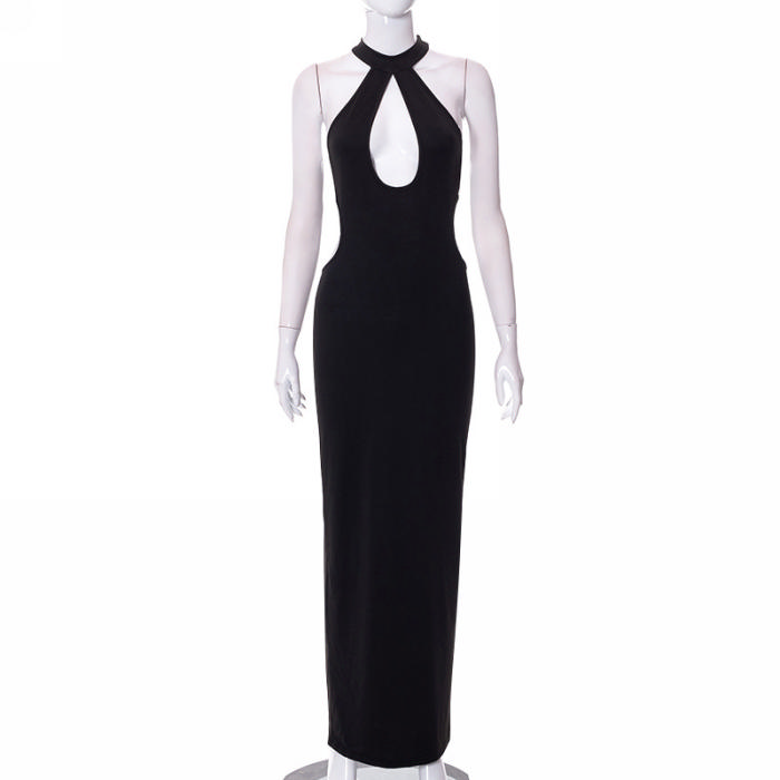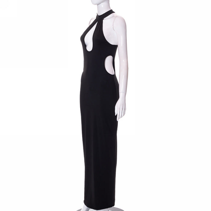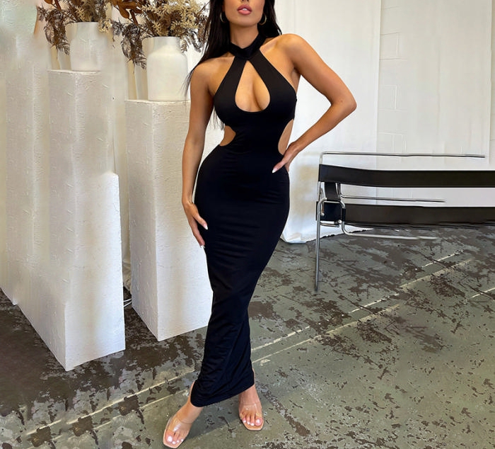 (Real Image)2022 Styles Women Fashion Instagram Styles Black Halter Cut Out Maxi DressSKU: #CF73047-1
