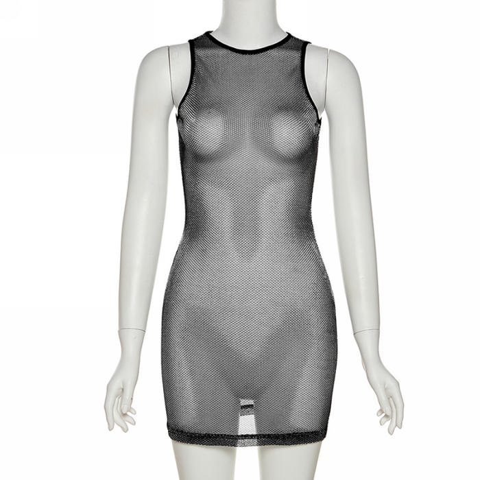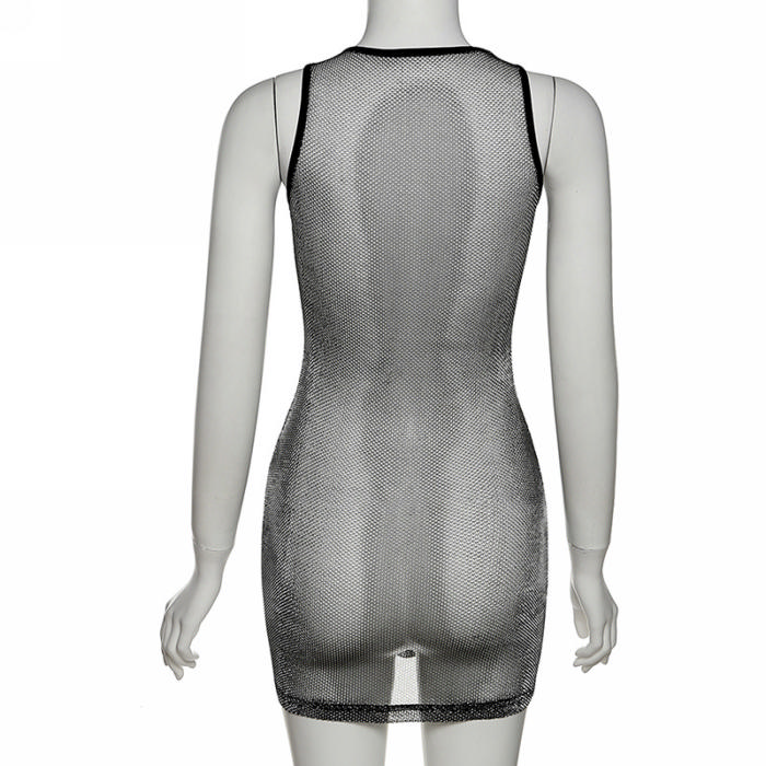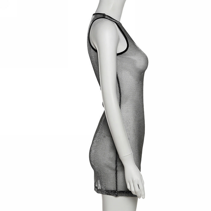 (Real Image)2022 Styles Women Fashion Instagram Styles Black Mesh Sleeveless Mini DressSKU: #CF12342-1