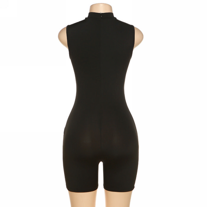 (Real Image)2022 Styles Women Fashion Instagram Styles Black Sleeeveless Print RomperSKU: #CF12332-1