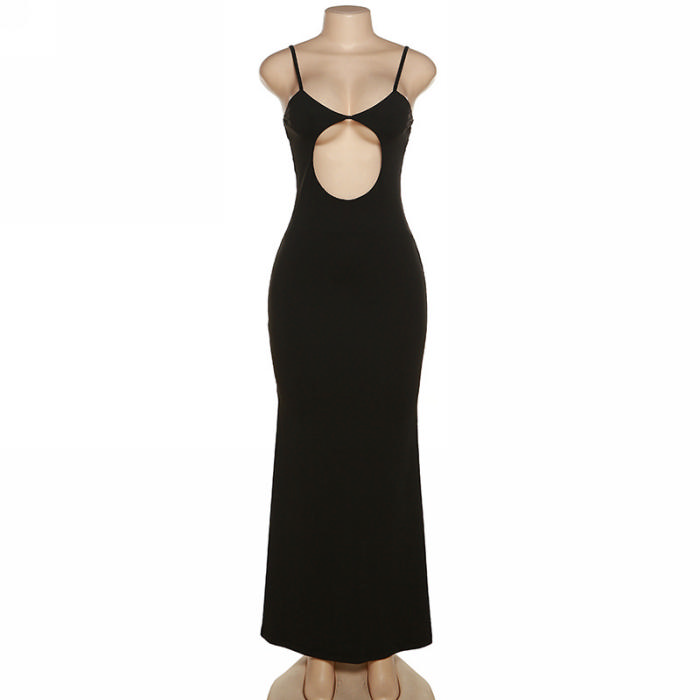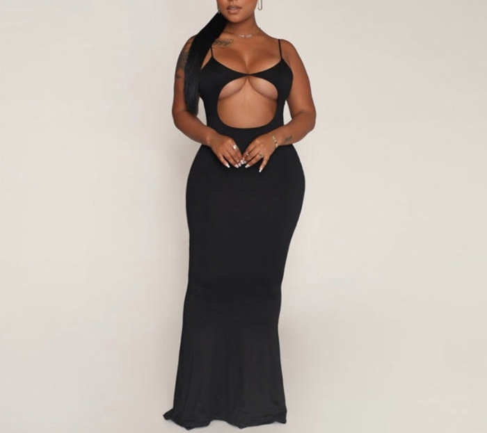 (Real Image)2022 Styles Women Fashion Instagram Styles Black Strap Maxi DressSKU: #CF12356-1