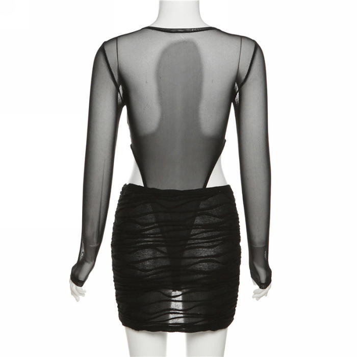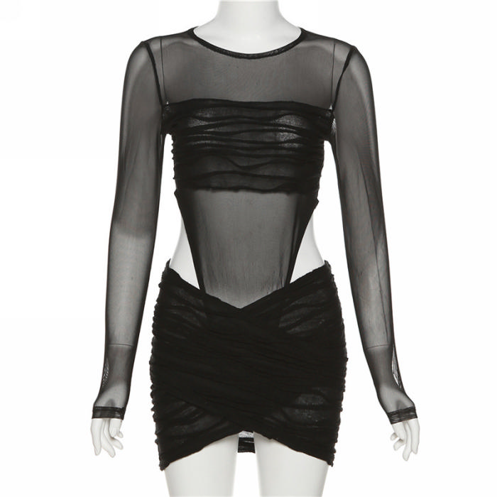 (Real Image)2022 Styles Women Fashion Instagram Styles Blacke Mesh Bodysuit + Skirts Two Piece DressSKU: #CF48744-1