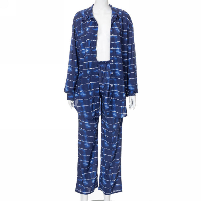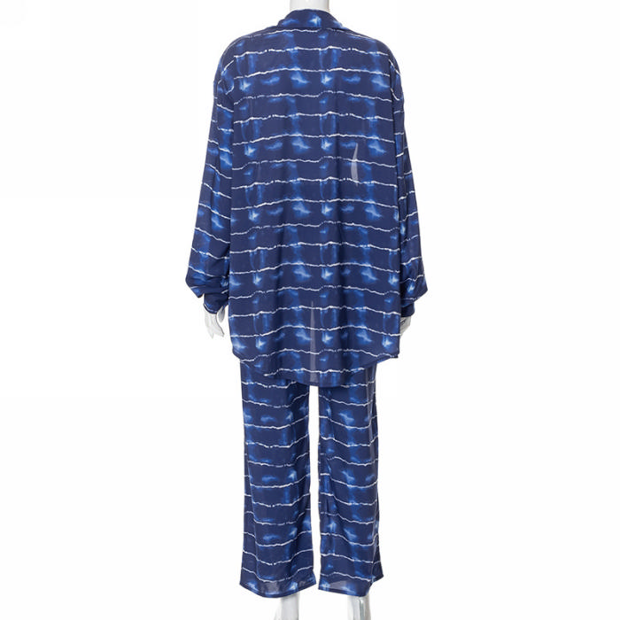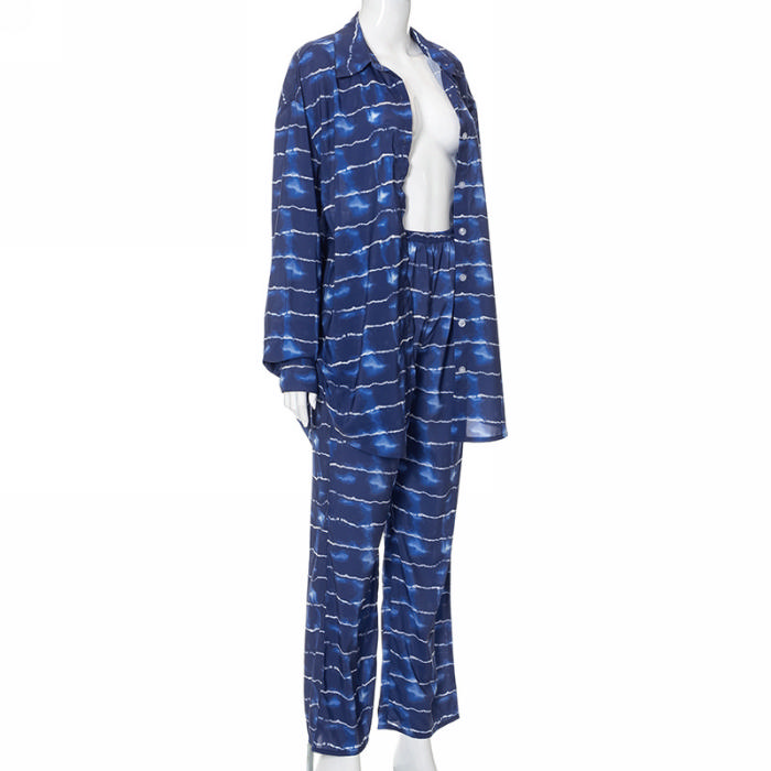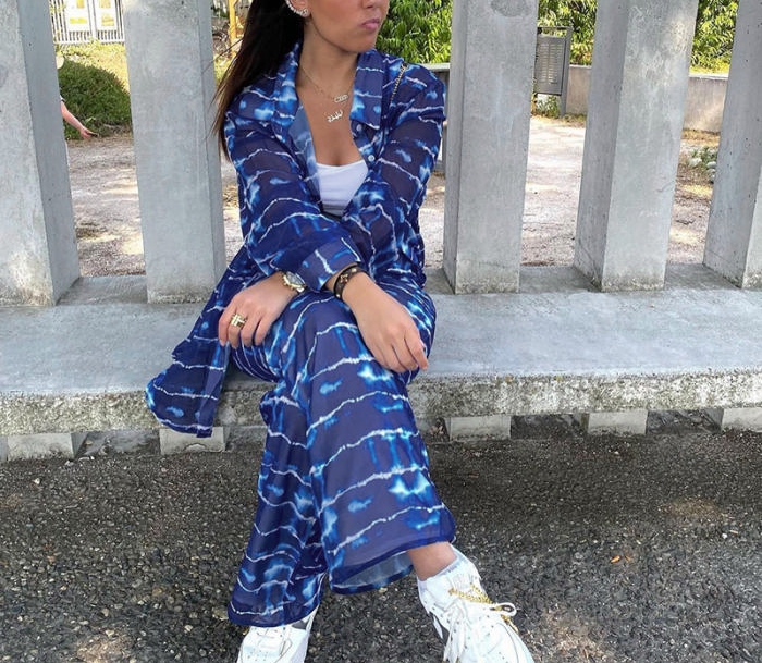 (Real Image)2022 Styles Women Fashion Instagram Styles Blue Print Two Piece SuitSKU: #CF73035-1