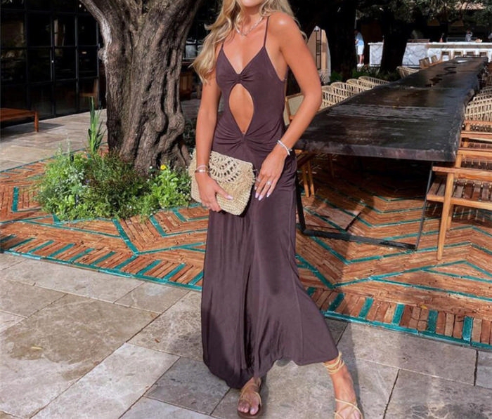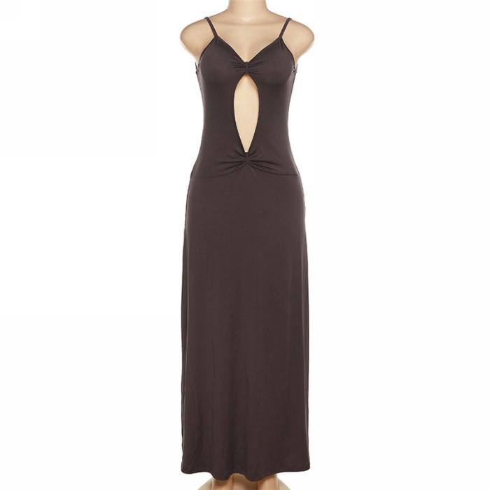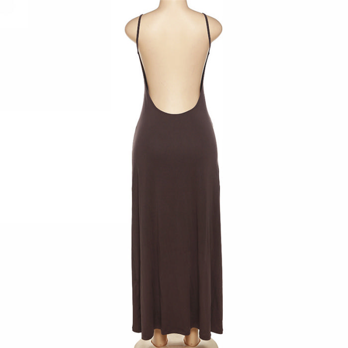 (Real Image)2022 Styles Women Fashion Instagram Styles Brown Cut Out Backless Strap Maxi DressSKU: #CF12336-1