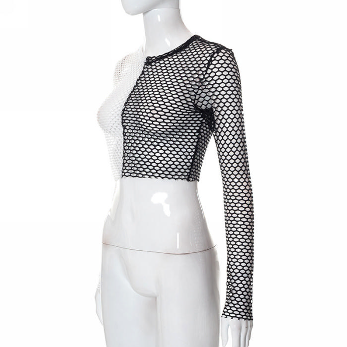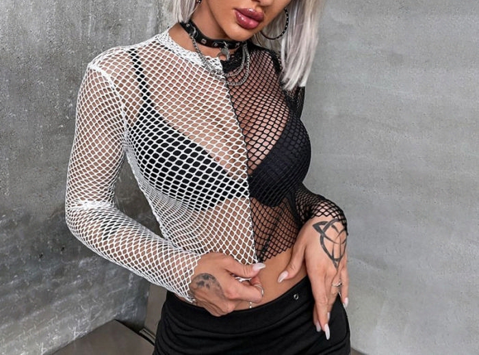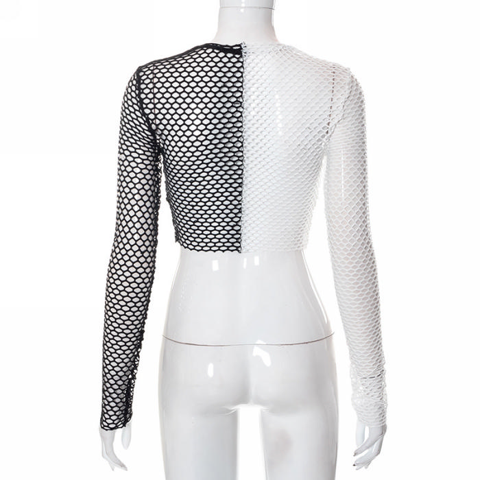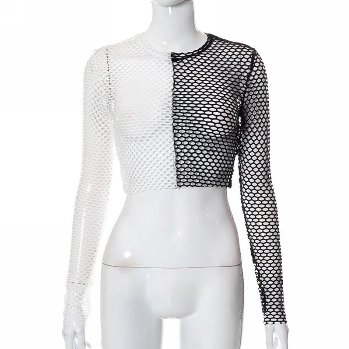 (Real Image)2022 Styles Women Fashion Instagram Styles Contrast Color Black&White Net TeeSKU: #CF73044-1
