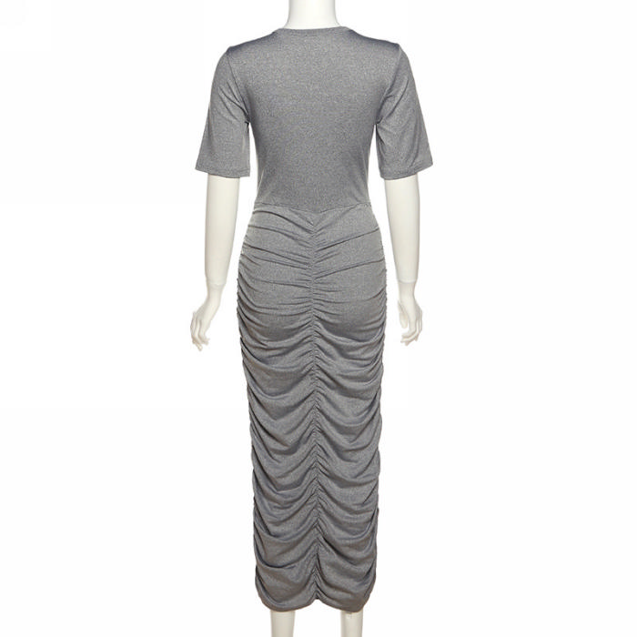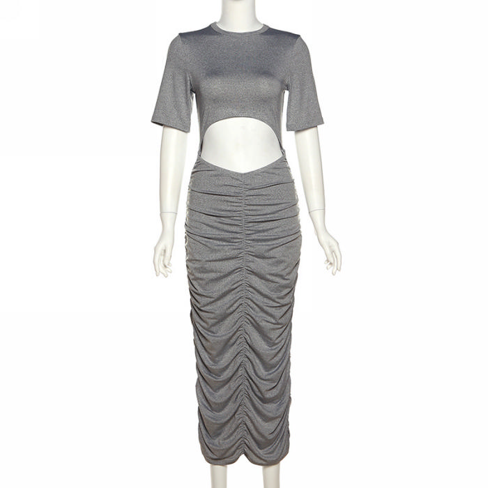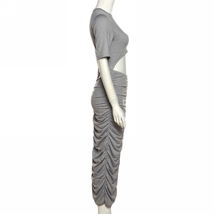 (Real Image)2022 Styles Women Fashion Instagram Styles Gray Cut Out Maxi DressSKU: #CF48758-1