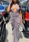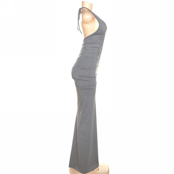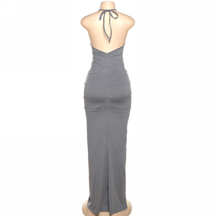(Real Image)2022 Styles Women Fashion Instagram Styles Gray Deep V Neck Ruffle Maxi DressSKU: #CF48762-1