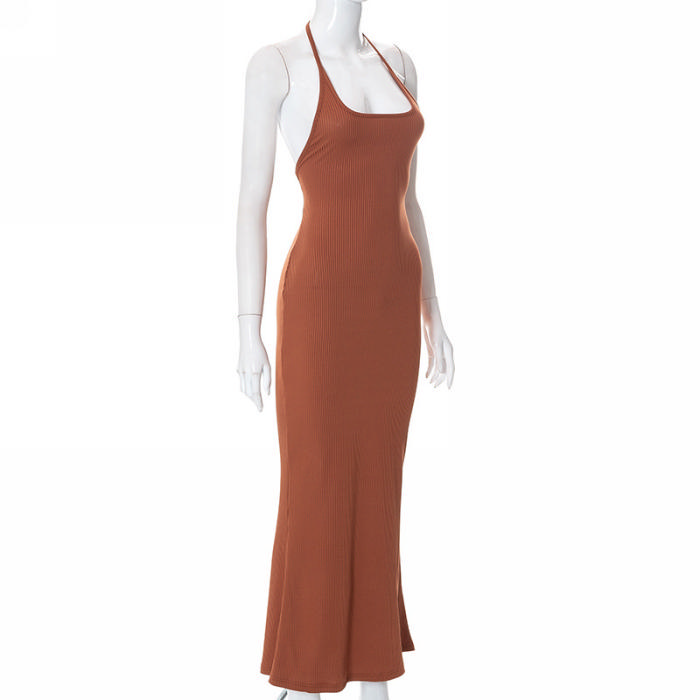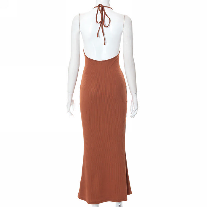 (Real Image)2022 Styles Women Fashion Instagram Styles Halter Strap Backless Maxi DressSKU: #CF73015-1