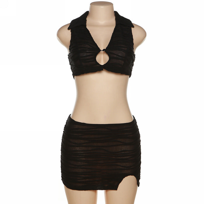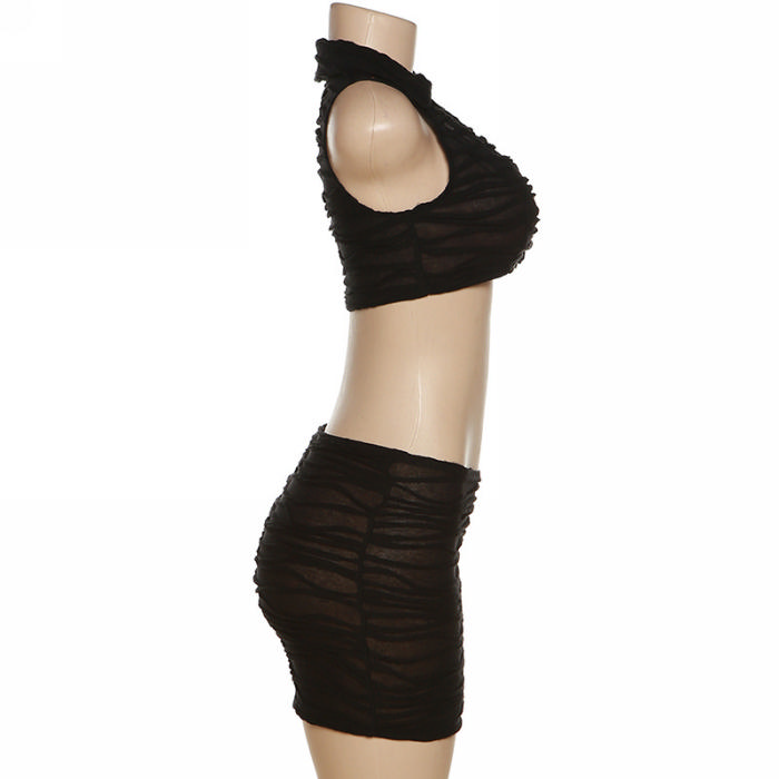 (Real Image)2022 Styles Women Fashion Instagram Styles Mesh Ruffle Two Piece DressSKU: #CF12363-1