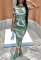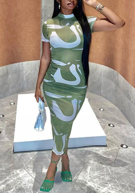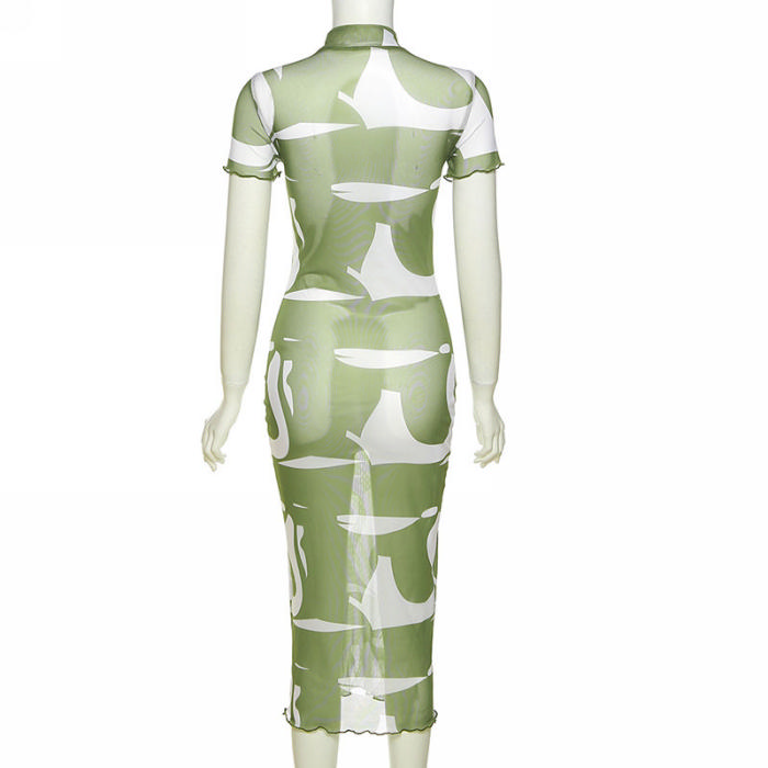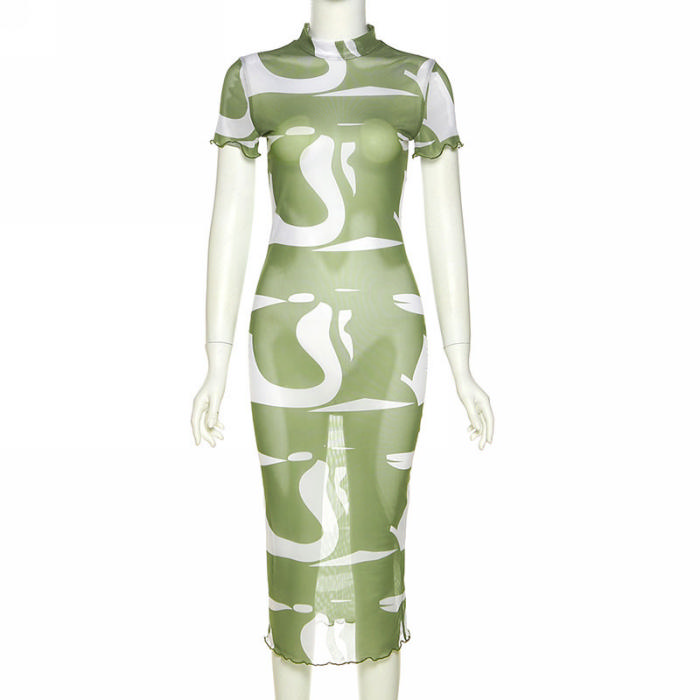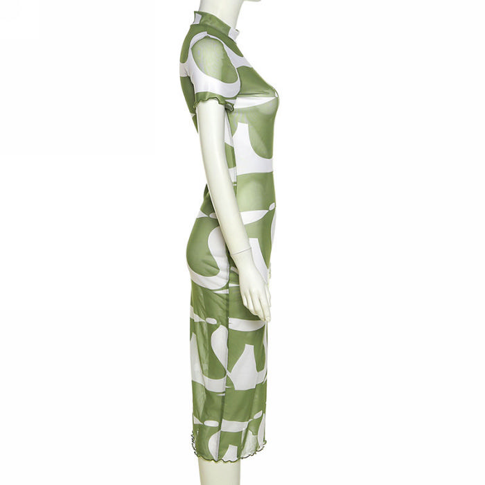 (Real Image)2022 Styles Women Fashion Instagram Styles Mesh Short Sleeeve Green Maxi DressSKU: #CF12331-1