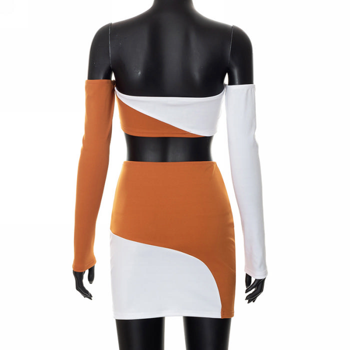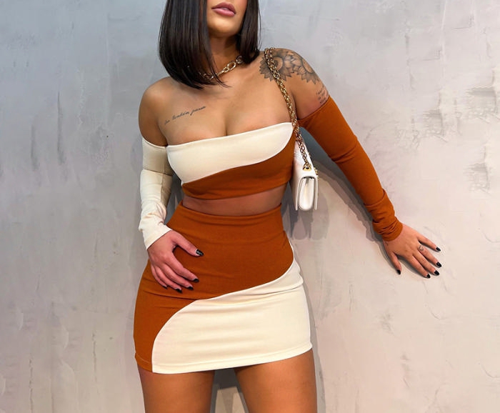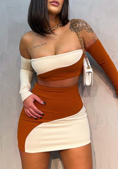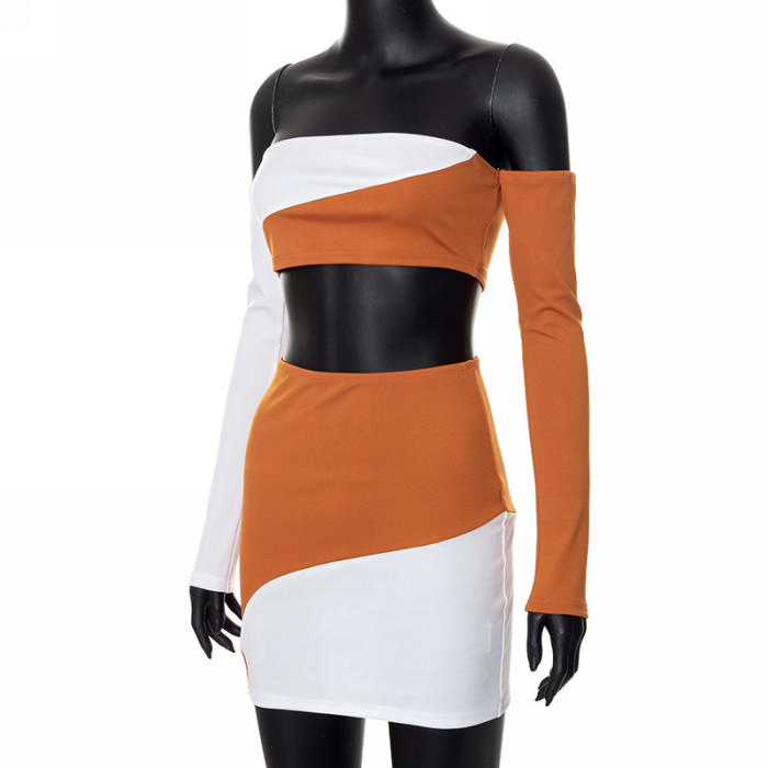 (Real Image)2022 Styles Women Fashion Instagram Styles Off Shoulder Contrast Color Two Piece DressSKU: #CF73041-1