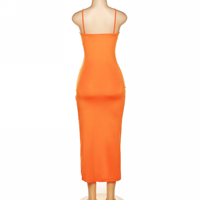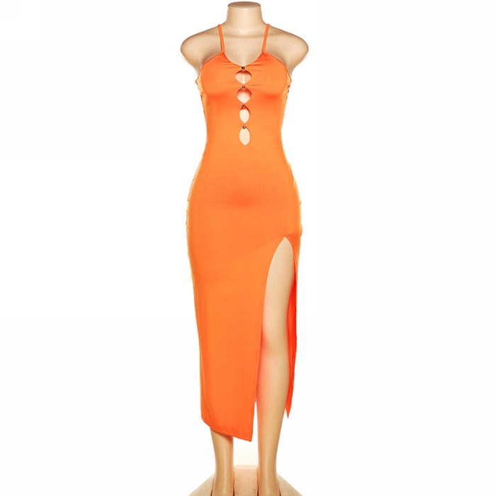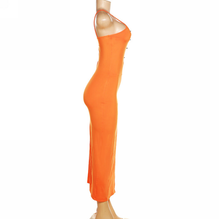 (Real Image)2022 Styles Women Fashion Instagram Styles Orange High Split Maxi DressSKU: #CF12361-1