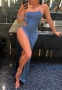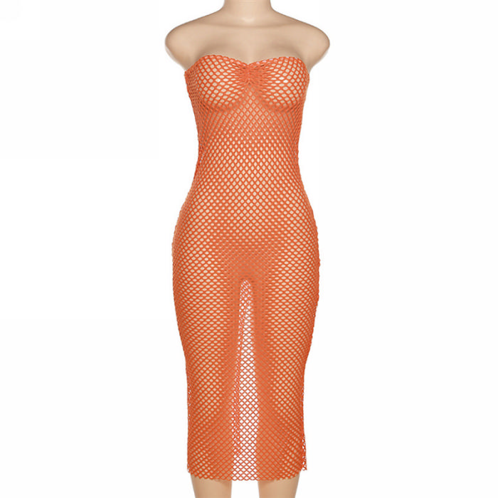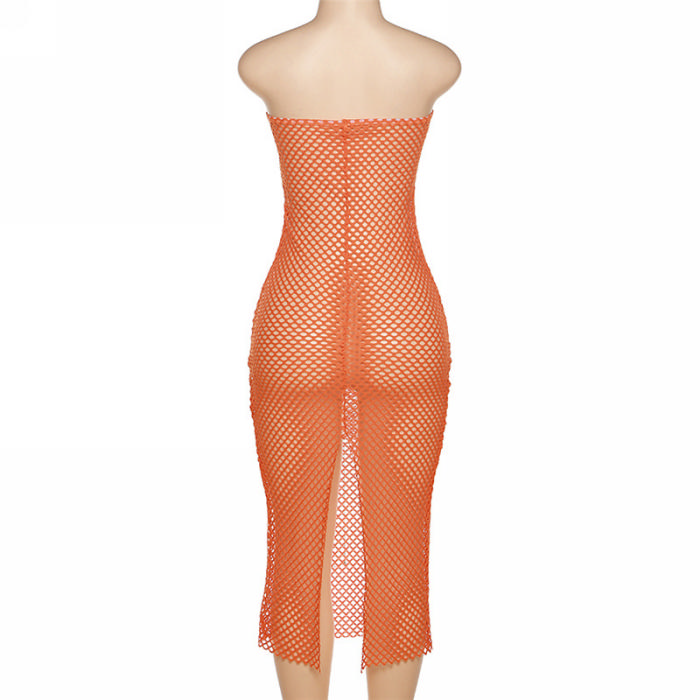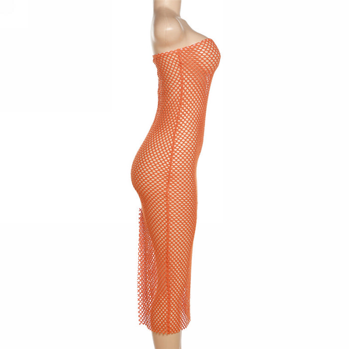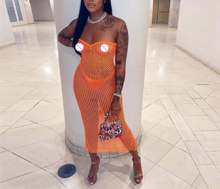 (Real Image)2022 Styles Women Fashion Instagram Styles Orange Tube Net Maxi DressSKU: #CF48735-1