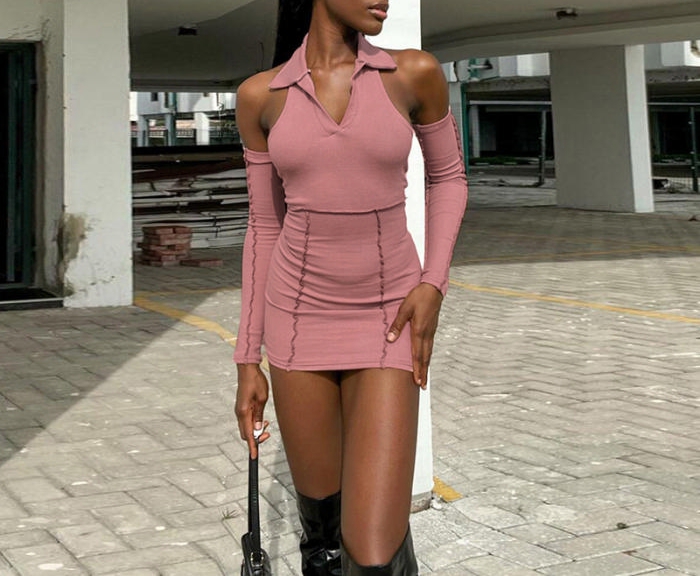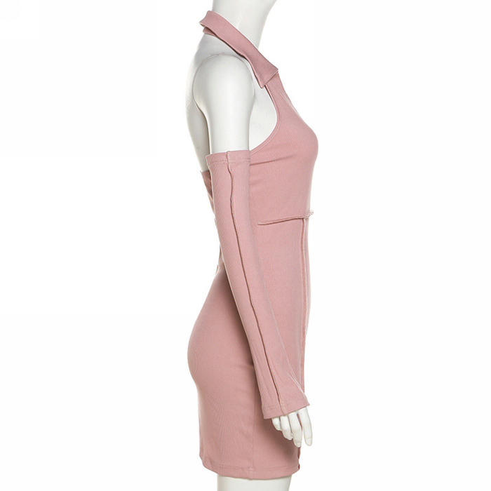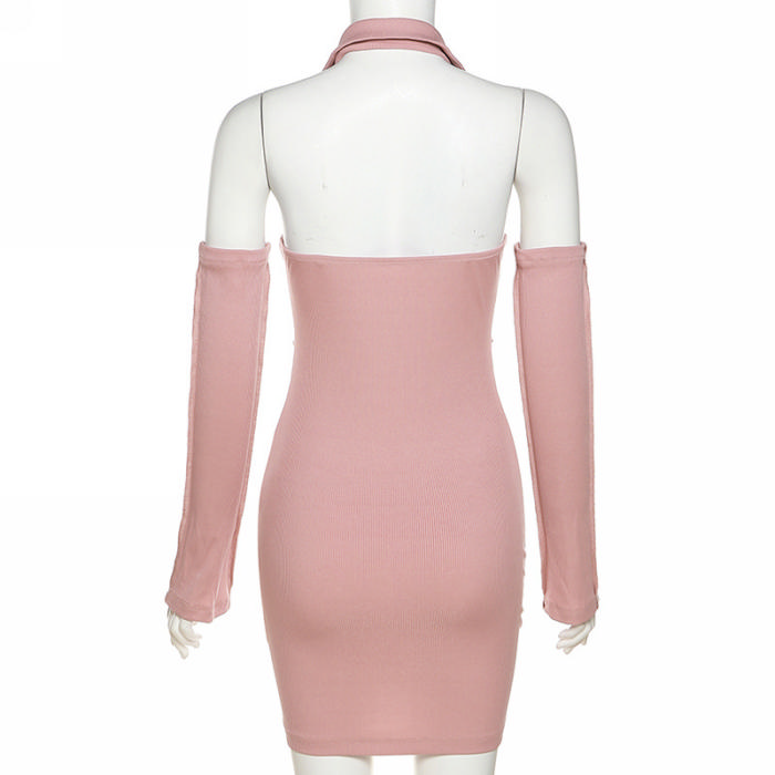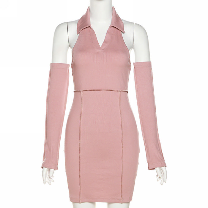 (Real Image)2022 Styles Women Fashion Instagram Styles Pink Halter Mini DressSKU: #CF12353-1
