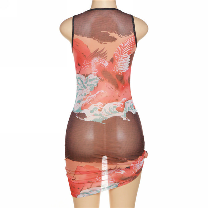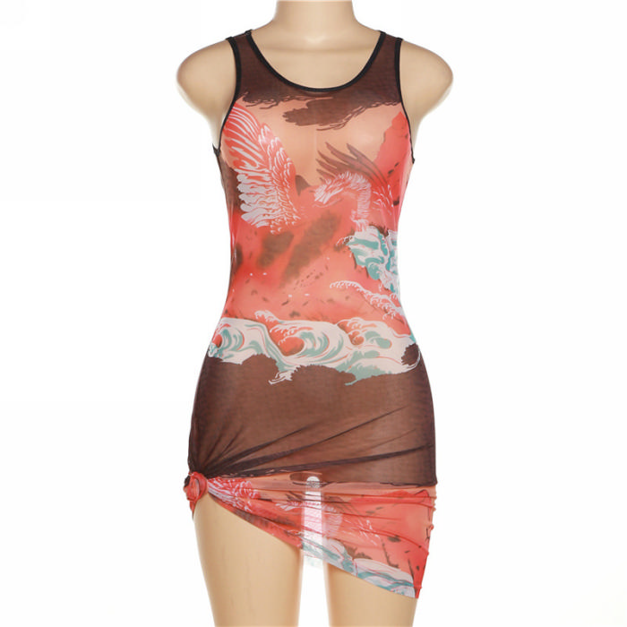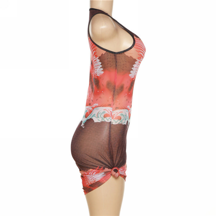 (Real Image)2022 Styles Women Fashion Instagram Styles Print Orange Mini DressSKU: #CF48766-1