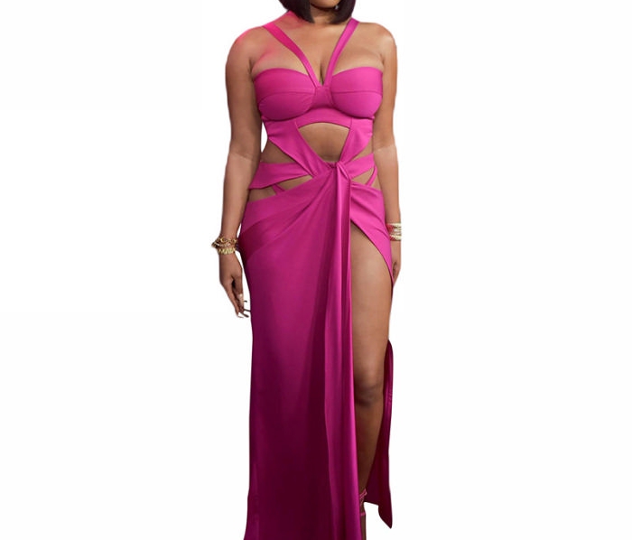 (Real Image)2022 Styles Women Fashion Instagram Styles Rose Bandage Maxi DressSKU: #CF48760-1