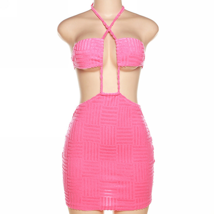 (Real Image)2022 Styles Women Fashion Instagram Styles Rose Tie Velvet Club DressSKU: #CF48774-1