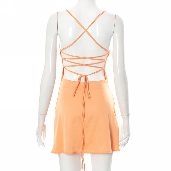 (Real Image)2022 Styles Women Fashion Instagram Styles Silk Strap Mini DressSKU: #CF73023-1