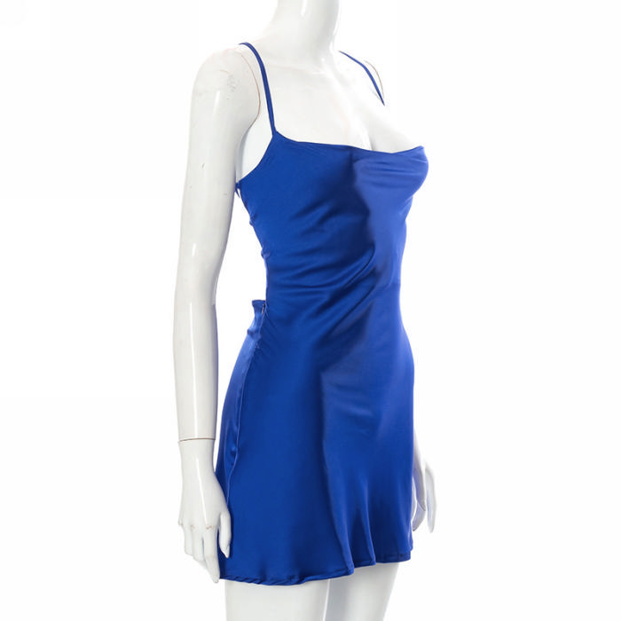 (Real Image)2022 Styles Women Fashion Instagram Styles Silk Strap Mini DressSKU: #CF73023-4
