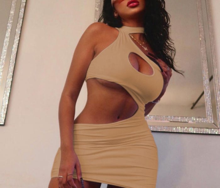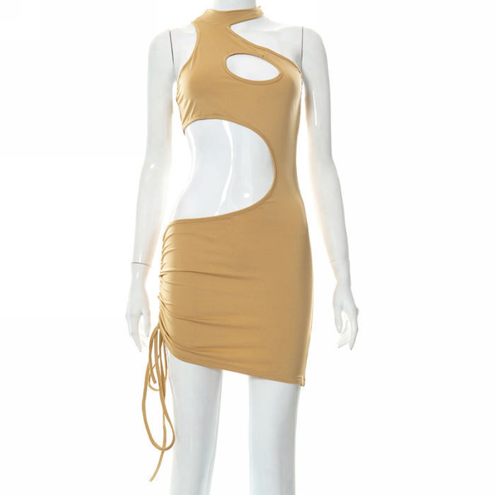 (Real Image)2022 Styles Women Fashion Instagram Styles Solid Color Cut Out Club DressSKU: #CF73011-2