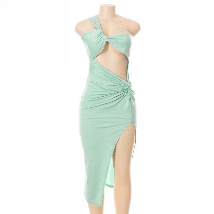 (Real Image)2022 Styles Women Fashion Instagram Styles Solid Color Cut Out Irregular Midi DressSKU: #CF73020-1