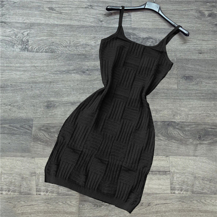 (Real Image)2022 Styles Women Fashion Instagram Styles Solid Color Strap Sweater Mini DressSKU: #CF48769-2