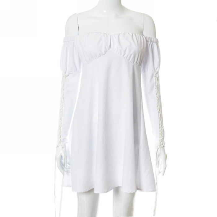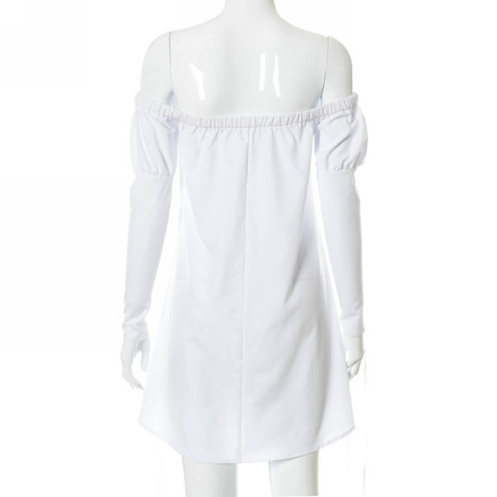 (Real Image)2022 Styles Women Fashion Instagram Styles White Long Sleeve Off Shoulder Hem Mini DressSKU: #CF73012-3