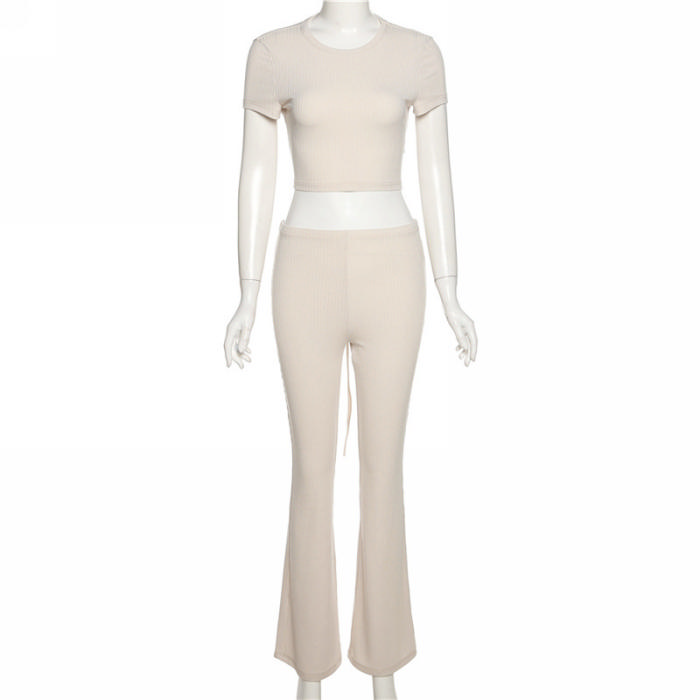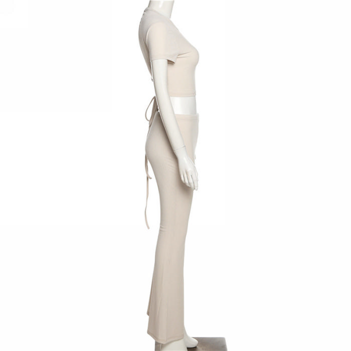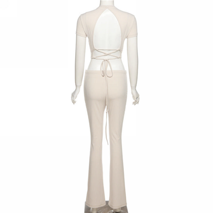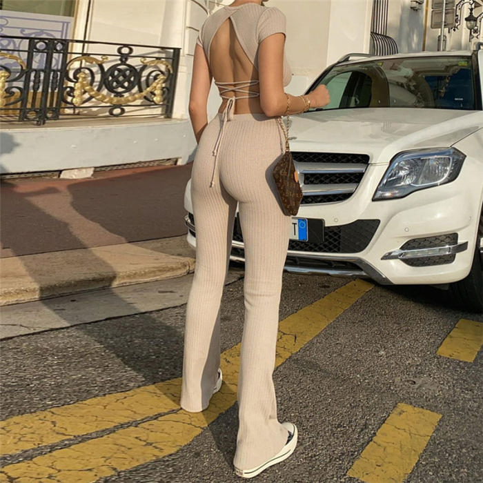 (Real Image)2022 Styles Women Fashion Spring INS Styles Backless Solid Color Two Piece SuitSKU: #OEM5535-1