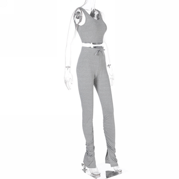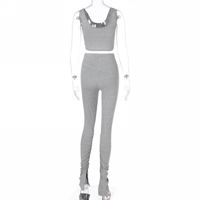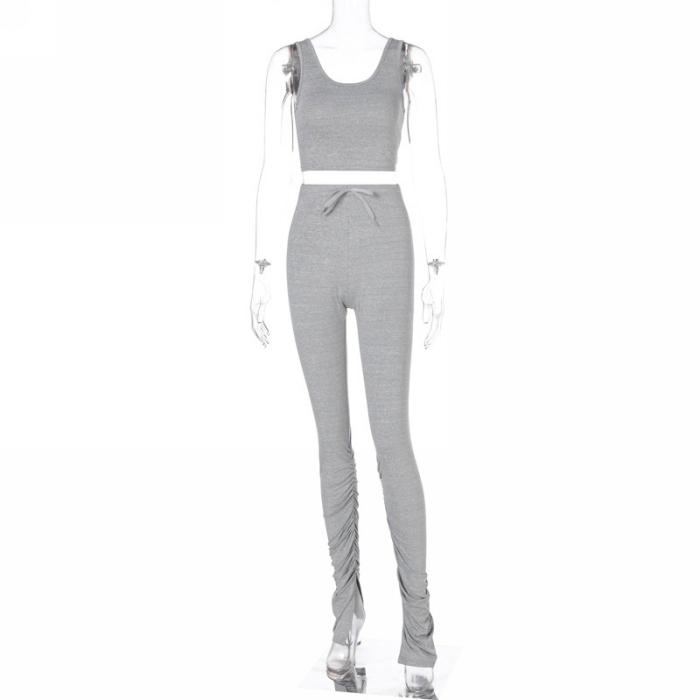 (Real Image)2022 Styles Women Fashion Spring INS Styles Casual Two Piece Outfits Crop Top Shirt Stacked Skinny Pants Tracksuit SetSKU: #OEM5541-2