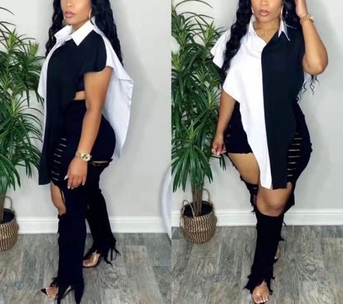 (Real Image)2022 Styles Women Fashion Spring INS Styles Contrast Color Front Button ShirtsSKU: #OEM5574-1