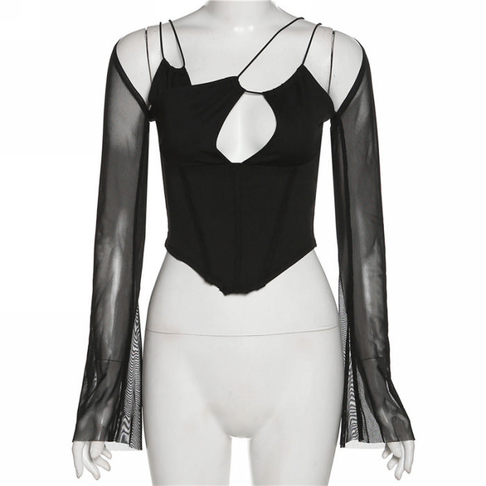 (Real Image)2022 Styles Women Fashion Spring INS Styles Cut Cut BlousesSKU: #CF49496-1