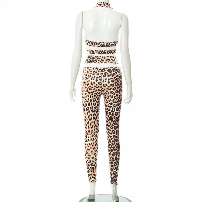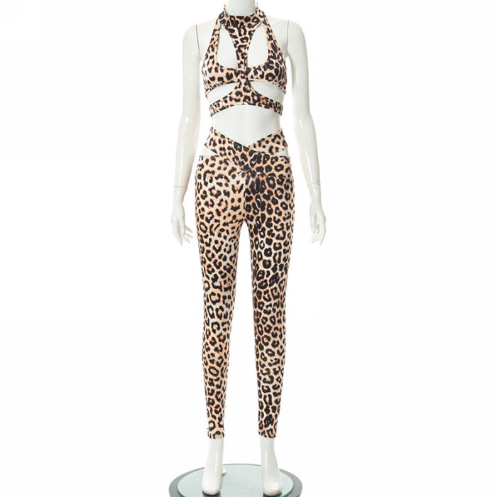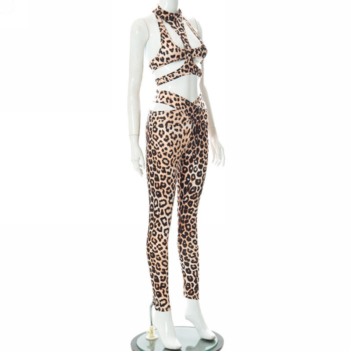 (Real Image)2022 Styles Women Fashion Spring INS Styles Cut Out Print Leopard Two Piece SuitSKU: #OEM5521-2