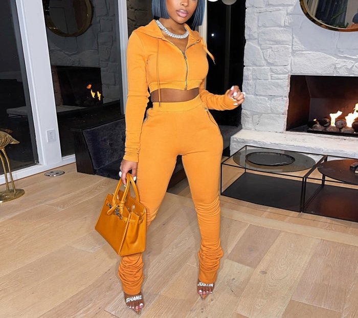 (Real Image)2022 Styles Women Fashion Spring INS Styles Front Zipper Hoodie Two Pieces SetSKU: #OEM5363-4