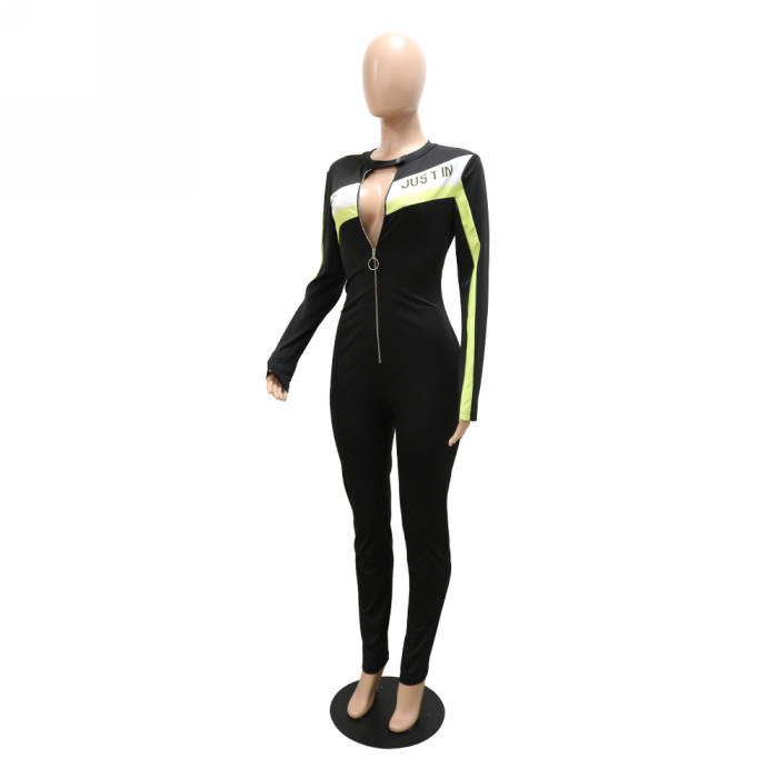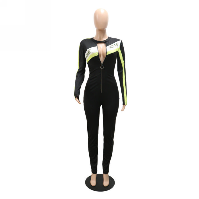 (Real Image)2022 Styles Women Fashion Spring INS Styles Front Zipper JumpsuitSKU: #OEM5437-1