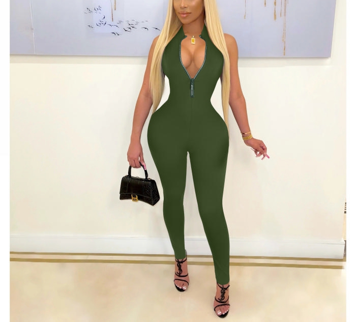 (Real Image)2022 Styles Women Fashion Spring INS Styles Front Zipper JumpsuitSKU: #OEM5443-4