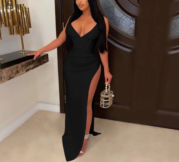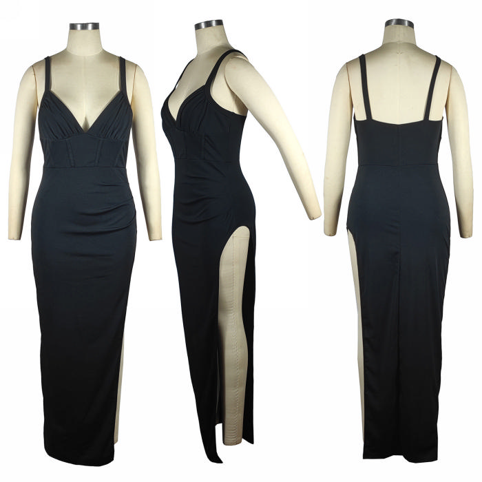 (Real Image)2022 Styles Women Fashion Spring INS Styles High Split Maxi DressSKU: #XF14837-2