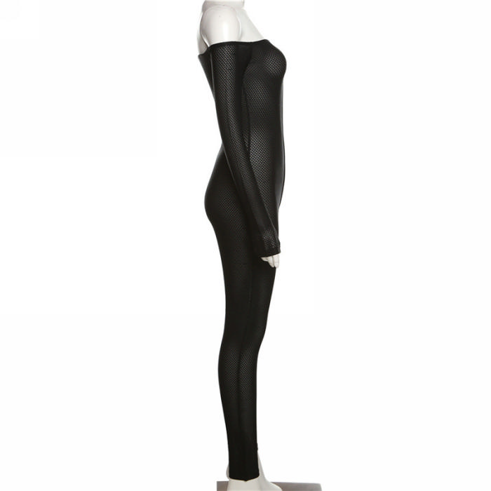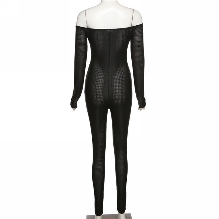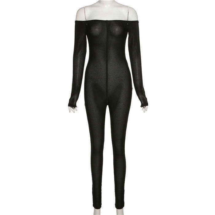 (Real Image)2022 Styles Women Fashion Spring INS Styles Hollow Net Off Shoulder Long Sleeve JumpsuitSKU: #CF49489-1