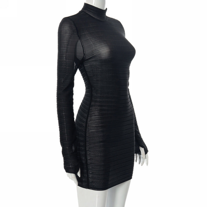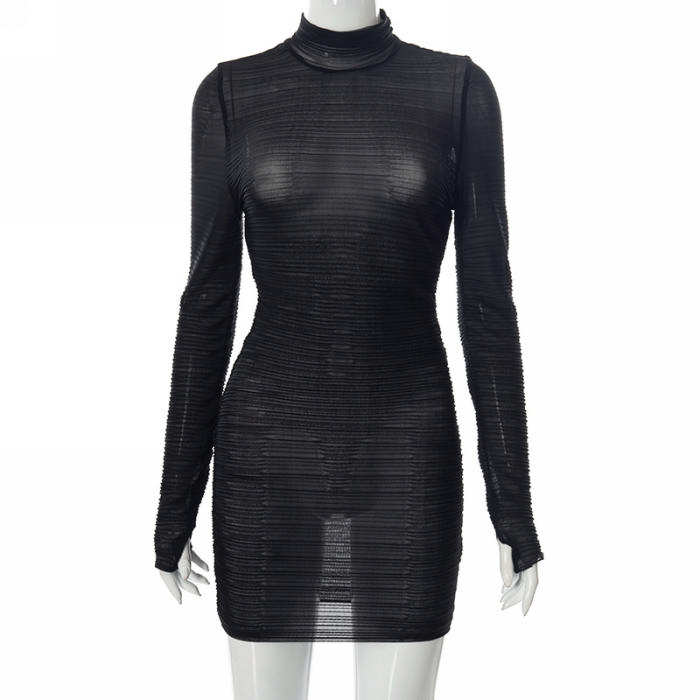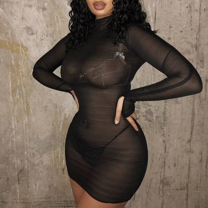 (Real Image)2022 Styles Women Fashion Spring INS Styles Long Sleeve Mesh Mini DressSKU: #OEM5522-1