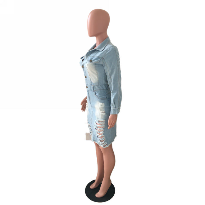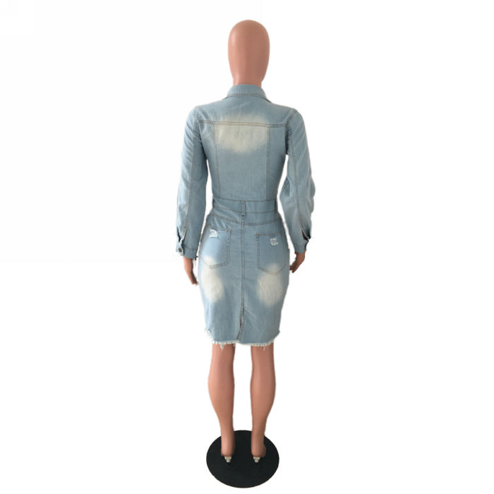 (Real Image)2022 Styles Women Fashion Spring INS Styles Long Sleeve Ripped Jeans Mini DressSKU: #OEM5201-1