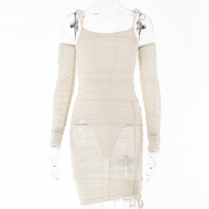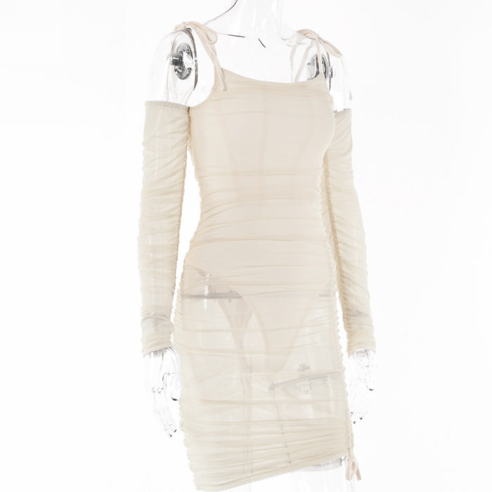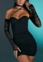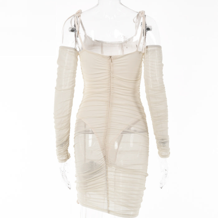 (Real Image)2022 Styles Women Fashion Spring INS Styles Mesh Cold Shoulder Long Sleeve Mini DressSKU: #OEM5185-1