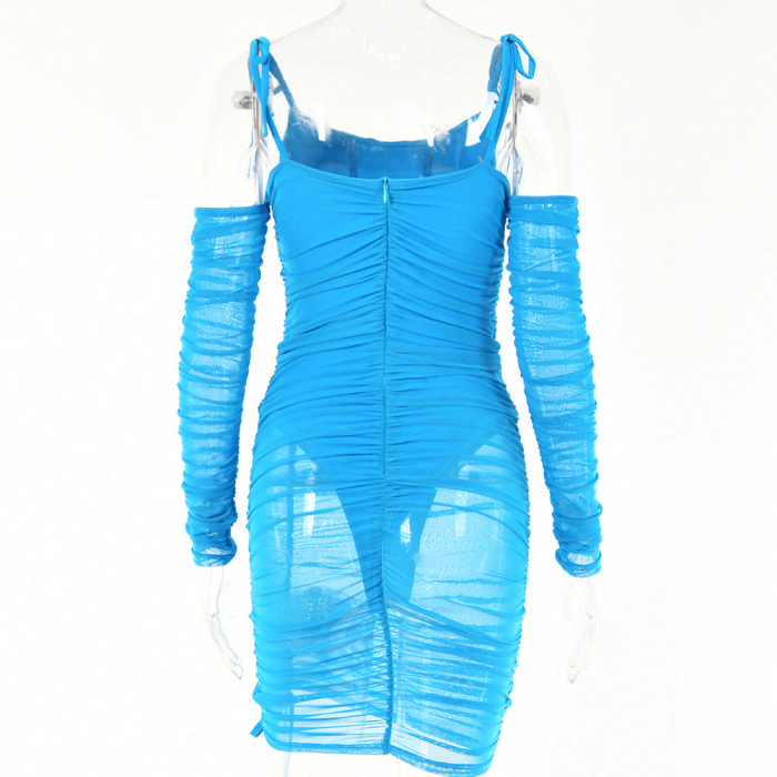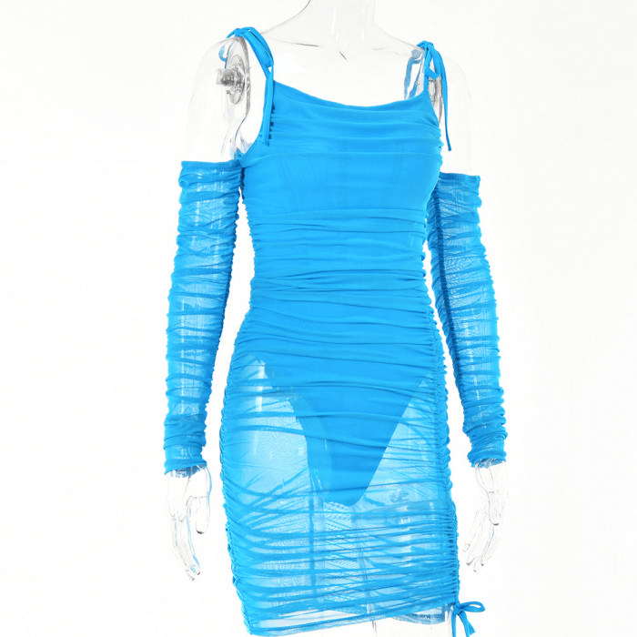 (Real Image)2022 Styles Women Fashion Spring INS Styles Mesh Cold Shoulder Long Sleeve Mini DressSKU: #OEM5185-3