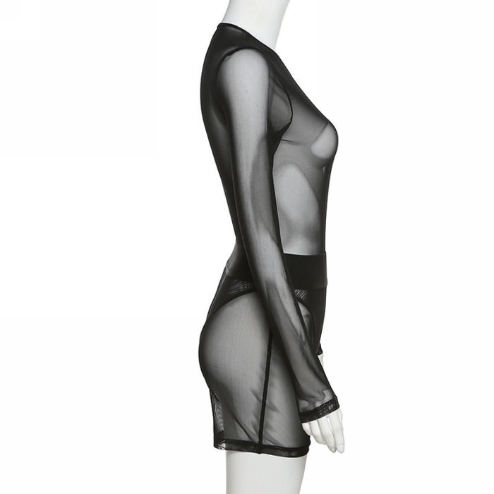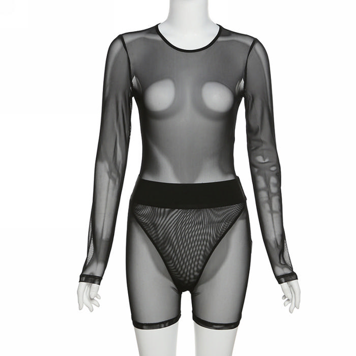 (Real Image)2022 Styles Women Fashion Spring INS Styles Mesh Short Two Piece SuitSKU: #CF49420-1