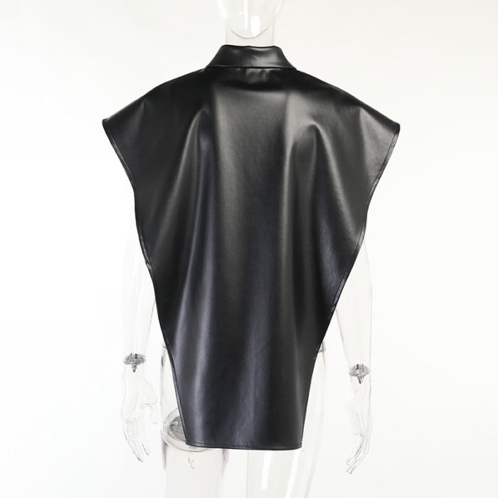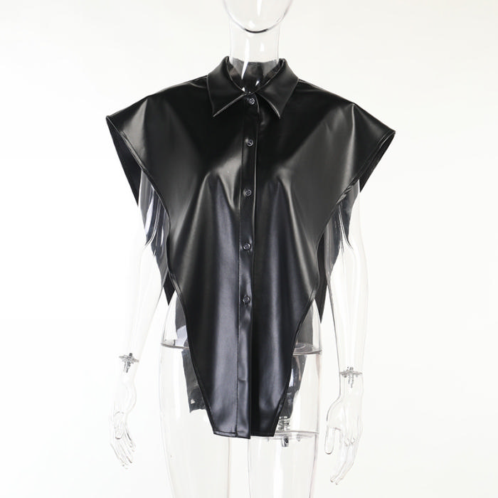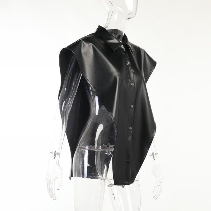 (Real Image)2022 Styles Women Fashion Spring INS Styles PU Front Button Solid Color ShirtsSKU: #OEM5575-2